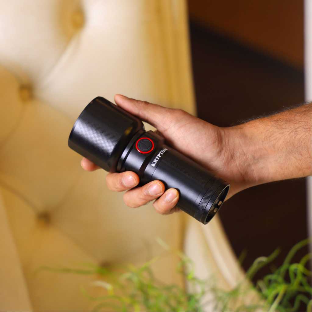 Key Features: The Krypton KNFL5457 LED Flashlight with Power Bank is the perfect companion for those who need reliable and ultra-bright illumination. Boasting an impressive 3000-lumen output, this 25W flashlight ensures maximum visibility, making it ideal for outdoor adventures, emergency situations, and home security. Designed for convenience and efficiency, this rechargeable flashlight features an integrated power bank, allowing you to charge your mobile devices on the go. With an extended 15-hour battery life, you can rely on long-lasting performance without interruptions. Whether you’re camping, hiking, or preparing for a power outage, the Krypton KNFL5457 is engineered to provide durability, brightness, and versatility. ower Output: 25W high-performance LED flashlight Lumen Output: 3000 Lumens for superior brightness Battery Life: Up to 15 hours of continuous operation Charging Feature: Built-in power bank for charging devices Material: Durable and lightweight design for long-lasting use Usage: Perfect for indoor & outdoor activities, including camping, hiking, emergencies, and security Light Modes: Multiple brightness settings for various lighting needs Rechargeable: Energy-efficient and eco-friendly battery system