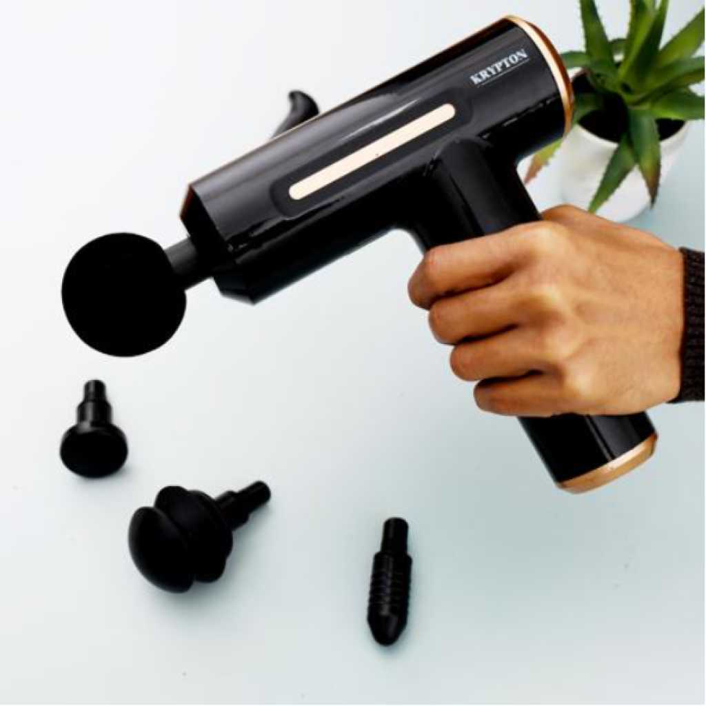 Krypton Massager 5-Speed Charging KNM6275 Model KNM6275 24W 5 Speed Levels 6 Interchangeable Heads 1800mAh Battery Capacity Instead of getting traditional massage therapy once a month, you can use the Krypton handheld massager from the comfort of your own home. With this powerful massager, everyone from professional athletes to recreational gym-goers to those with chronic pain can get your recovery time shortened while getting rid of muscle pain, tension, and soreness. percussion massager is a handheld device that applies concentrated pressure into muscle tissues. Deep tissue massage can reduce muscle tension while improving blood flow and quickly offers long-term relief by reducing pain. It will give you deep muscle relaxation, provides reduced stress, and a body-wide better-relaxed feeling which improves life quality. 1800mah fast-charging & long-life battery – the deep tissue massage gun equipped with a 5V adapter meaning it charges fast.