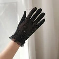 Kvinder Blomst Rhinestone Dekorere Blonde Handsker Mode Stof Solskærm Åndbare Korte Delte Fingerhandsker Helfingerhandsker