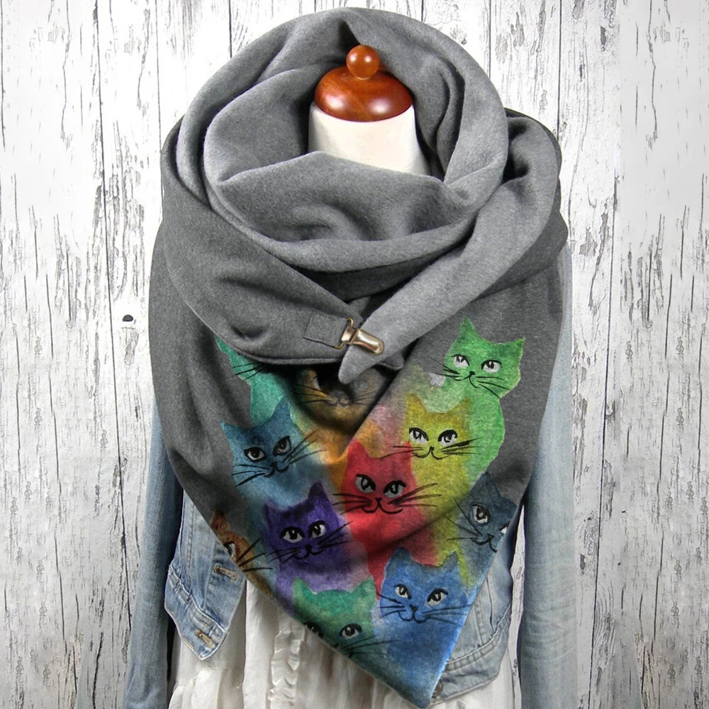 Kun US$8.79, køb Kvinder Farverige Søde Tegneseriekatte Mønster Blødt Personligt Nakkebeskyttelse Hold Varmt Tørklæde på Banggood.com. Køb mode scarf & shawl & square online.