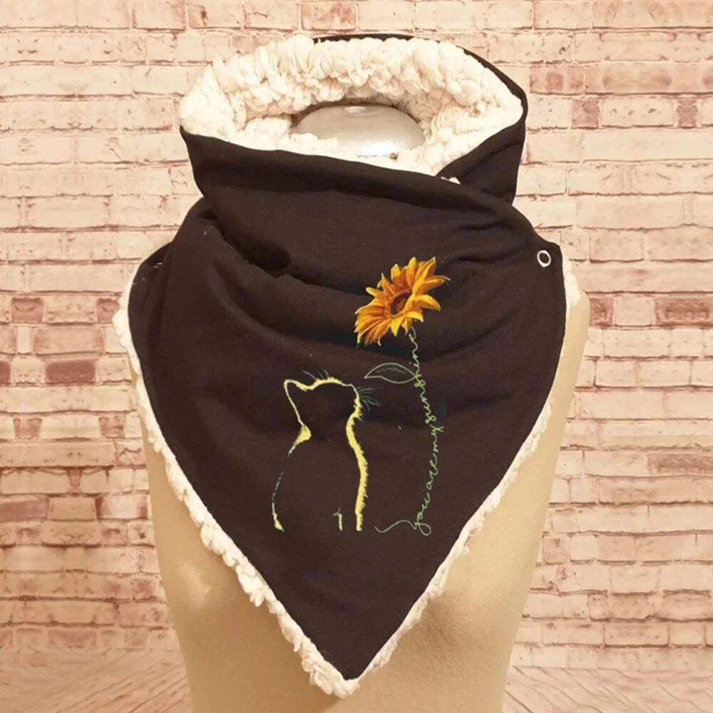 Kvinder Kat Solskin Mønster Blødt Tyk Personlighed Nakkebeskyttelse Hold Varm Tørklæde