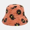 Kvinder Lammehår Blødt Varmt Plus Tykt Afslappet Alsidig Sød Tusindfryd Blomstermønster Bøttehat