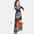 Kvinder Retro Blomst Tie-dye Print Forbind Fashion Kunstig Kashmir Dobbelt Brug Tykk Varme Tassel Tørklæde