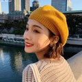 Kvinder Uld Solide Farve Vinter Varmstrikket Hat Britisk Retro Kuppel Elastisk Solskærm Beret Hat Maler Hat