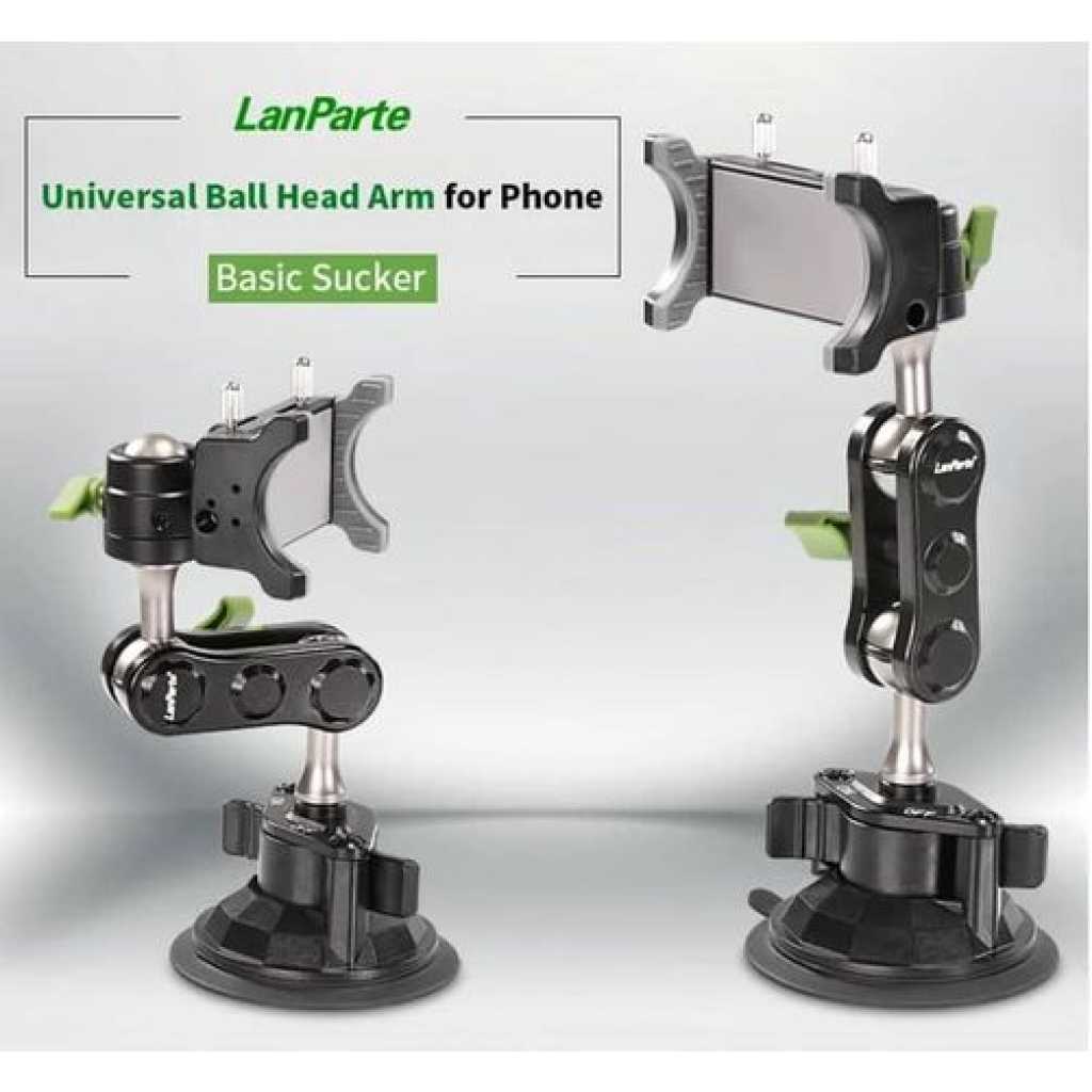Lanparte UBA-01L Universal 360° Rotating Ball Head Arm Car Suction Cup Mount Extended Bracket Multi Angle Adjustable Phone Holder That Works On Car's Dashboard Or Windshield