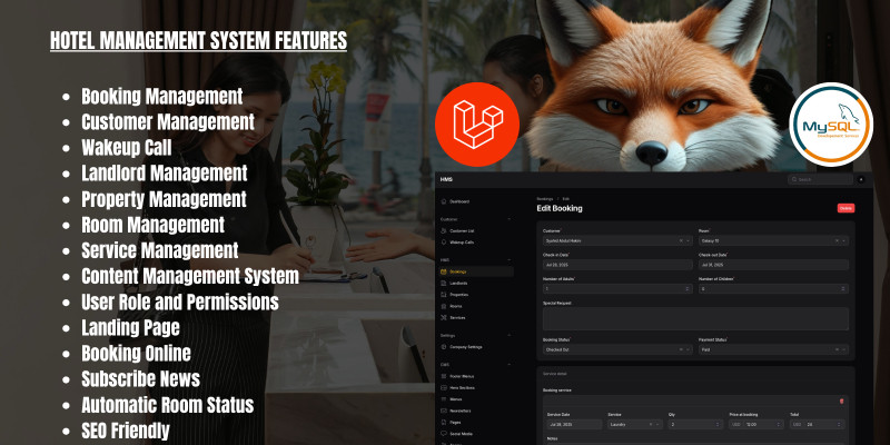 Laravel Hotel Management System Pro. Powerful Laravel-based hotel management system with booking, check-in/out, payments, and SEO-ready landing page.
