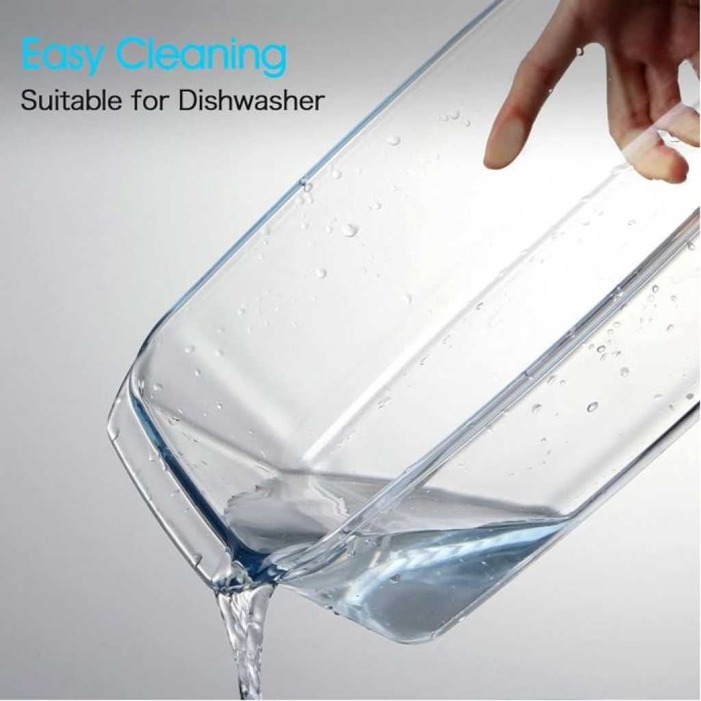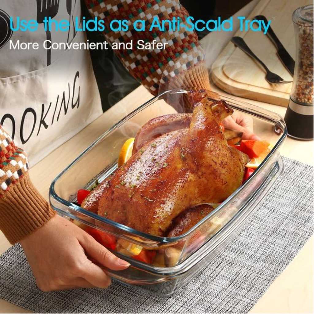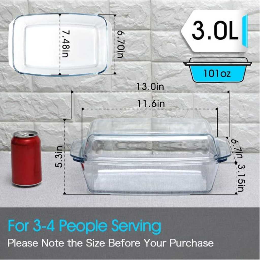 Large Glass Casserole Dish, Oven Safe Cookware With Lid, Oblong Covered Glass Dish For Baking, Serving, Cooking, Microwave and Dishwasher Safe Bakeware, 3 Quart Capacity – Clear Prep, cook, serve, bake, store and reheat all in one dish! This glass baking dish is quality made in Europe from lab-grade, shatter-resistant borosilicate glass. When your food is ready, use this pan as an attractive serving piece. Leftovers? Store them directly in the roaster for quick and easy microwave reheating. Durable glass dish can withstand temperatures ranging from -40 degrees to 542 degrees Fahrenheit and has a high thermal shock resistance. Holds 3.3 quarts. Plus, the lid doubles as an additional baking dish and holds 2.3 quarts. Microwave and dishwasher safe. Make this baking dish yours today- you’ll be glad you did!