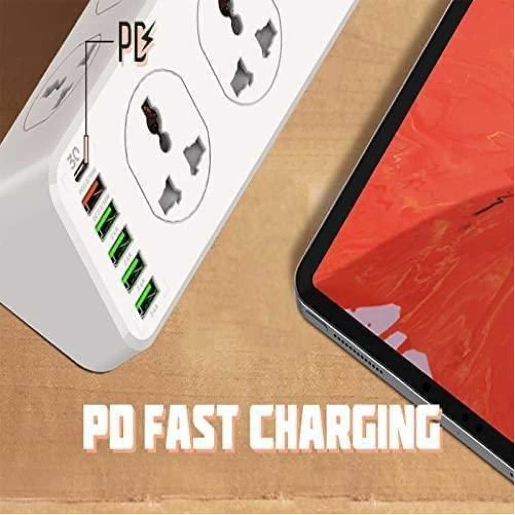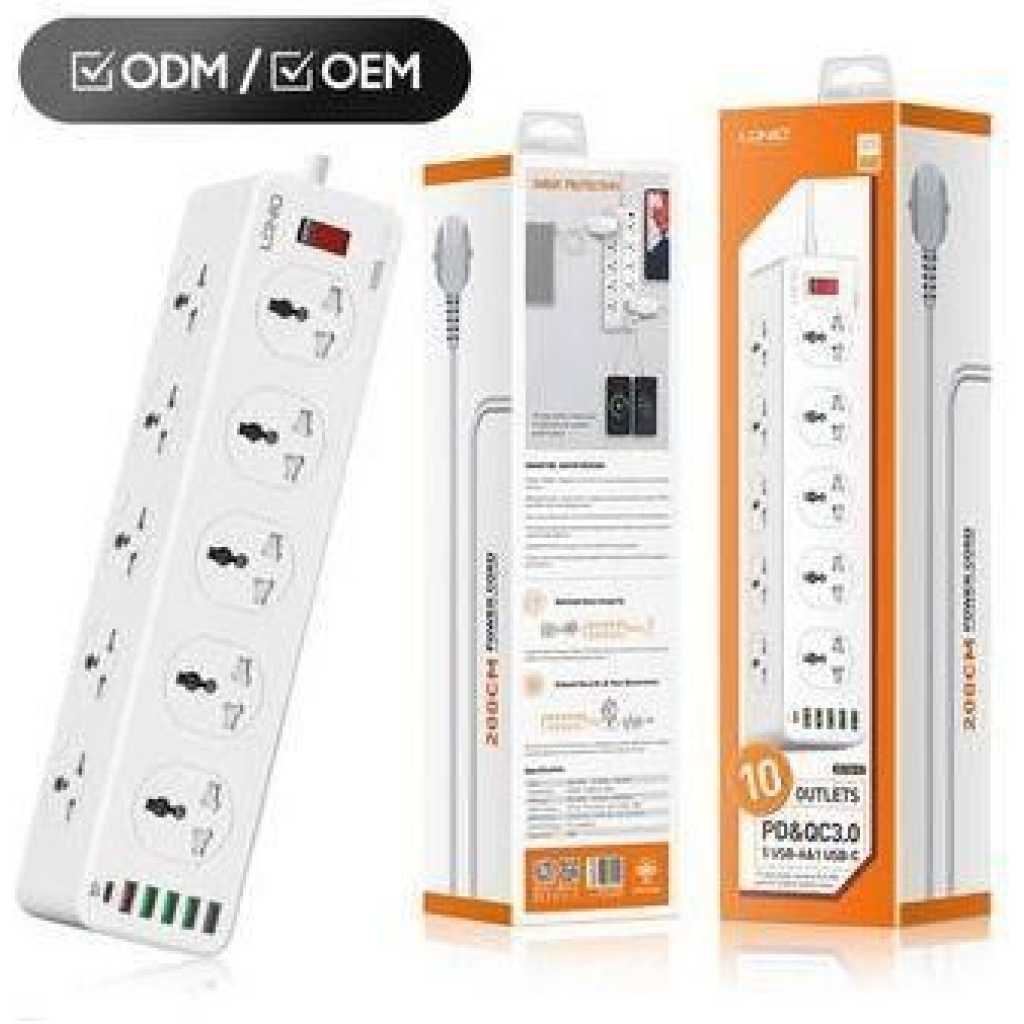 Ldnio Power Extension with 10-Outlet Surge protector power sockets, 5 USB-A, 1 USB-C Ports 30W PD+QC Fast charging adapter sockets 2-meter heavy-duty power Extension Cord