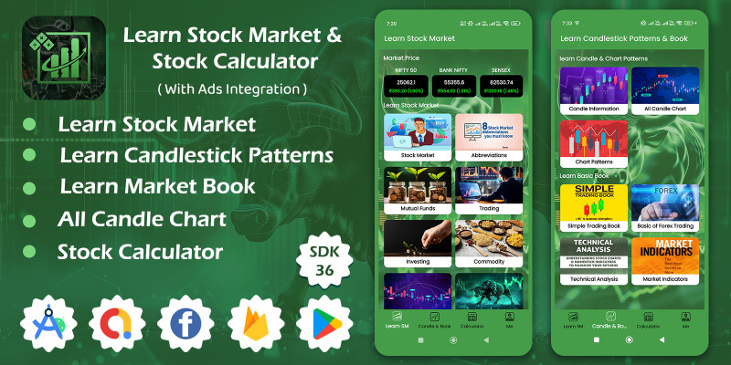 Learn Stock Market - Stock Calculator Android App. Learn Stock Market, Learn Candlestick Patterns, Learn Basic Books, Stock Calculator