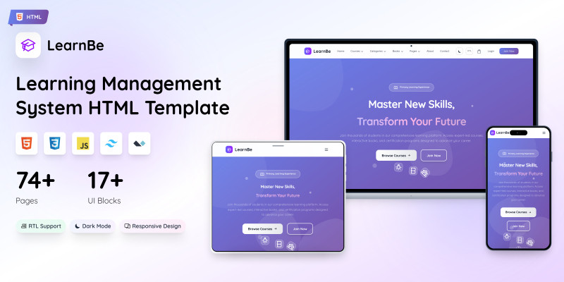 LearnBe - Learning Management System HTML Template. LearnBe is a comprehensive, modern Learning Management System (LMS) template designed for educational institutions.