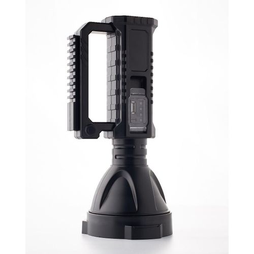 LED Super Bright Searchlight, Rechargeable Spotlight Flashlight High Lumens, 4 Modes Waterproof Searchlight Torch Spotlight, for Hiking, Camping, Emergency- Black 【Super Bright X-Large Spotlight Flashlight】 90000 Lumen LED Super Bright Searchlight uses XHP series lamp beads to provide the brightest light. Brightlight-focused beam with a long lighting distance range of more than 3280 ft / 1000 m, very high brightness, long distance, up to 90000 high lumens. 【Mobile Power and Power Display】 Our Rechargeable Spotlight Flashlight High Lumens is rechargeable and has a large capacity. The working time is up to 10 hours, and the power display function is added, so you can see the power at a glance without having to guess the remaining power of the flashlight. With a USB output port. This is also like a power bank, which can charge your device quickly and easily. 【4 modes and IPX5 Waterproof Flashlight Spotlight】 The Waterproof Searchlight Spotlight has 4 lighting modes: low brightness, medium brightness, high brightness, and strobe. The LED spotlight is made of high-intensity engineering ABS plastic. In addition, the IPX5 rechargeable tactical flashlights can be used normally in severe weather such as rain or snow. Please don’t put it directly in the water. 【Ultra-Lightweight & Widely Used】The powerful spotlight is equipped with an adjustable hands-free tripod. The LED Rechargeable Spotlight is made of high-grade ABS engineering materials, which are strong and portable, and it will be easy to use. Rotatable and detachable. It is very suitable for outdoor activities, such as searchlights, such as hiking, camping, hunting, adventure, night fishing, etc. It is also a good helper for emergency situations.
