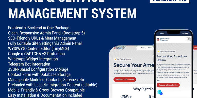 Legal & Service Management System. A lightweight, developer-friendly PHP & MySQL CMS tailored for law and immigration services