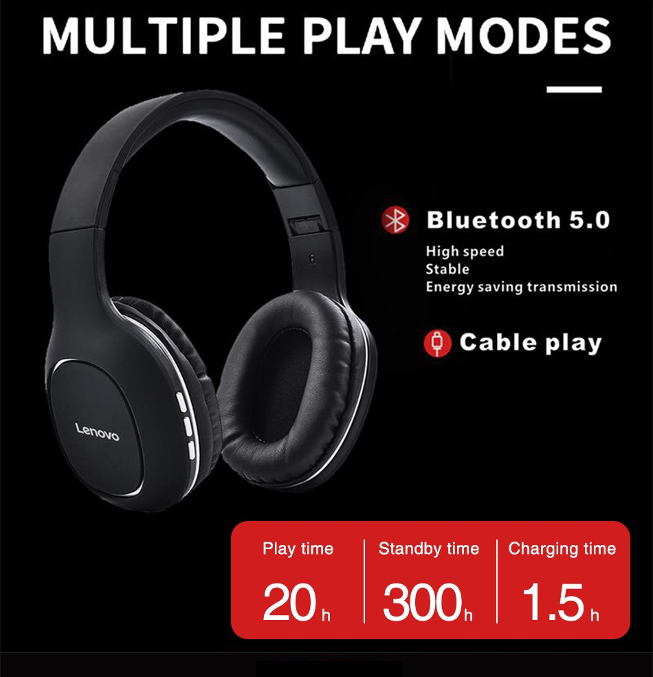 Lenovo HD300 Foldable Wireless Bluetooth Noise Cancellation Headphones – Black. Heavy-calibre Driver Speaker Tactile Player / Pause / Play Answer / Hang up Specification: Bluetooth version: V5 . 0 Battery capacity: 300mah Play time: Approximately11 hours Standby time: Approximately 150 hours Horn diameter: 40 mm Speaker sensitivity: 108db 3db Frequency response range: 20-20k Hz Distance: 10m barrier-free Package included: 1* Lenovo HD300 Wireless bluetooth Headset 1* USB Charging Cable 1* AUX Cable Key Features: Lenovo HD300 Foldable Wireless Bluetooth Noise Cancellation Headphones – Black. Bluetooth version: V5 . 0 Battery capacity: 300mah Play time: Approximately11 hours Standby time: Approximately 150 hours Horn diameter: 40 mm Speaker sensitivity: 108db 3db Frequency response range: 20-20k Hz Distance: 10m barrier-free