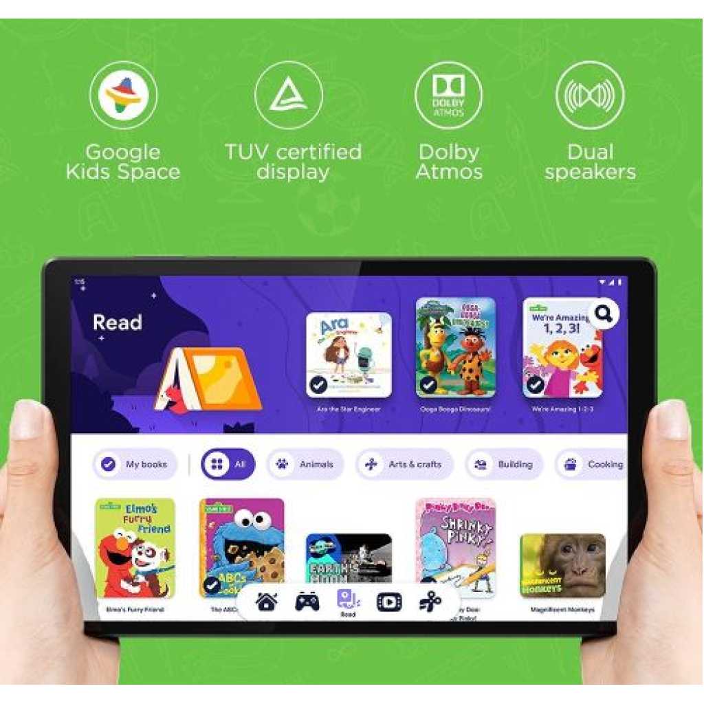 Product details From the manufacturer Go deep into details The 10.1” HD IPS panel with 400 nits brightness, TUV certification and narrow bezels pack a pixel-perfect visual experience, that’s also portable. The sleek profile and all-metal finish add on to the beauty. Bring power to the front Rely on MediaTek Helio P22T Octa Core processor to keep things running faster and smoother. On top of that, Android 10 brings in features like dark theme, smart reply and focus mode. Feed the curiosity Introducing a tablet experience to help kids discover, create, and grow. Google Kids Space brings content curated by teachers, handpicked books and creative videos all in one place. You can also manage the content and set viewing limits with parental control. Immerse in Dolby Watching classic cartoons or educational videos becomes better with three-dimensional audio. With Dolby Atmos and dual speakers, we have the experts of entertainment at work. Connect Possibilities 4G connectivity keeps you in touch with the world. Thanks to super-fast LTE, online classes or video call meetings go on without buffers. Go around wireless With 5000 mAh battery, the little explorers get up to 8 hours of fun. This means more time to imagine, learn and create without having to recharge often.