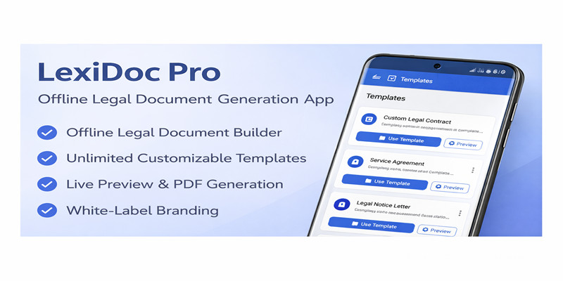 LexiDoc Pro – Offline Legal Document Builder. Offline-first Flutter app to create, customize, preview, and export professional legal documents using flexible templates.