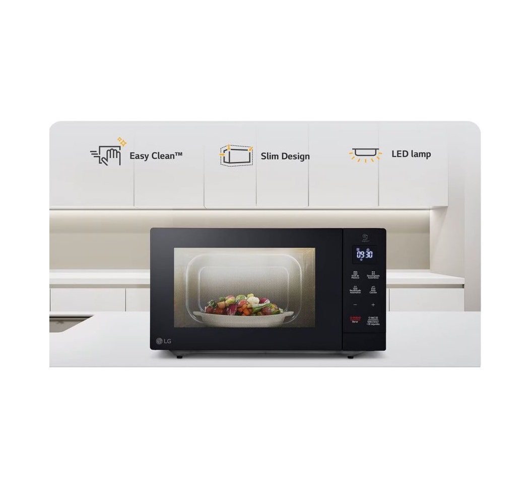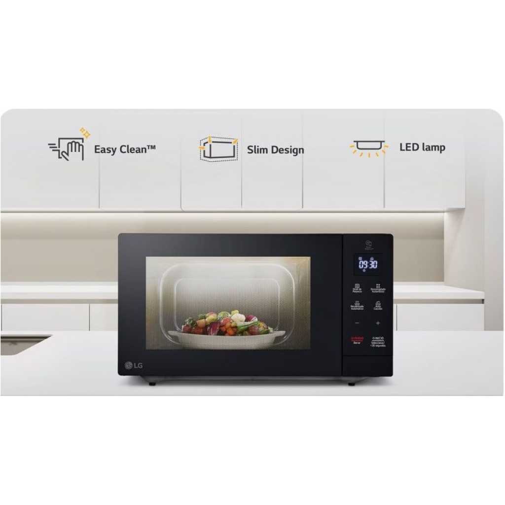 Key Features: LG 30L Neochef® Microwave Oven, MS3032JAS – EasyClean™ Antibacterial Coating, Sleek Design Solo microwave Power : 900W Capacity: 30 Litres Touch control Smart diagnosis 99.99% Anti-Bacterial EasyClean™ Slim design Child lock 20 auto cook menus Side swing door Minimalist design, practical space utilization Black