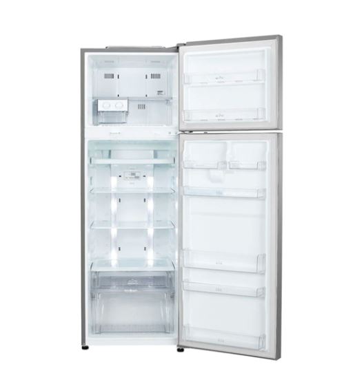 LG 310L-10.95 qft Double Door Fridge – Shiny Silver-GL-C362RLBN. Steady, even temperature every time is a core indicator of freshness. LINEAR Cooling™ makes temperature fluctuation within ±0.5℃. Compared to the refrigerator with LG conventional Smart Inverter Compressor. Based on the UL test comparing temperature fluctuation in time between LGE model B606S and B607S, according to LG internal test method. LG DoorCooling+™ makes the inside temperature more even and cool 35 quicker than the conventional cooling system. It significantly reduces the temperature gap between the inner part and the door side of the compartment.*Based on the UL test comparing door basket cooling time from 32°C to 5°C between LGE Non-door cooling and door cooling model of B607S, according to LG internal test method. Cooling air is supplied in every corner of the refrigerator with multiple cooling air vents. Thanks to LG’s Inverter Linear Compressor, ensuring market-leading efficiency by using fewer components than conventional compressors. Hence, Inverter Linear Compressor has fewer friction points, making less noise.