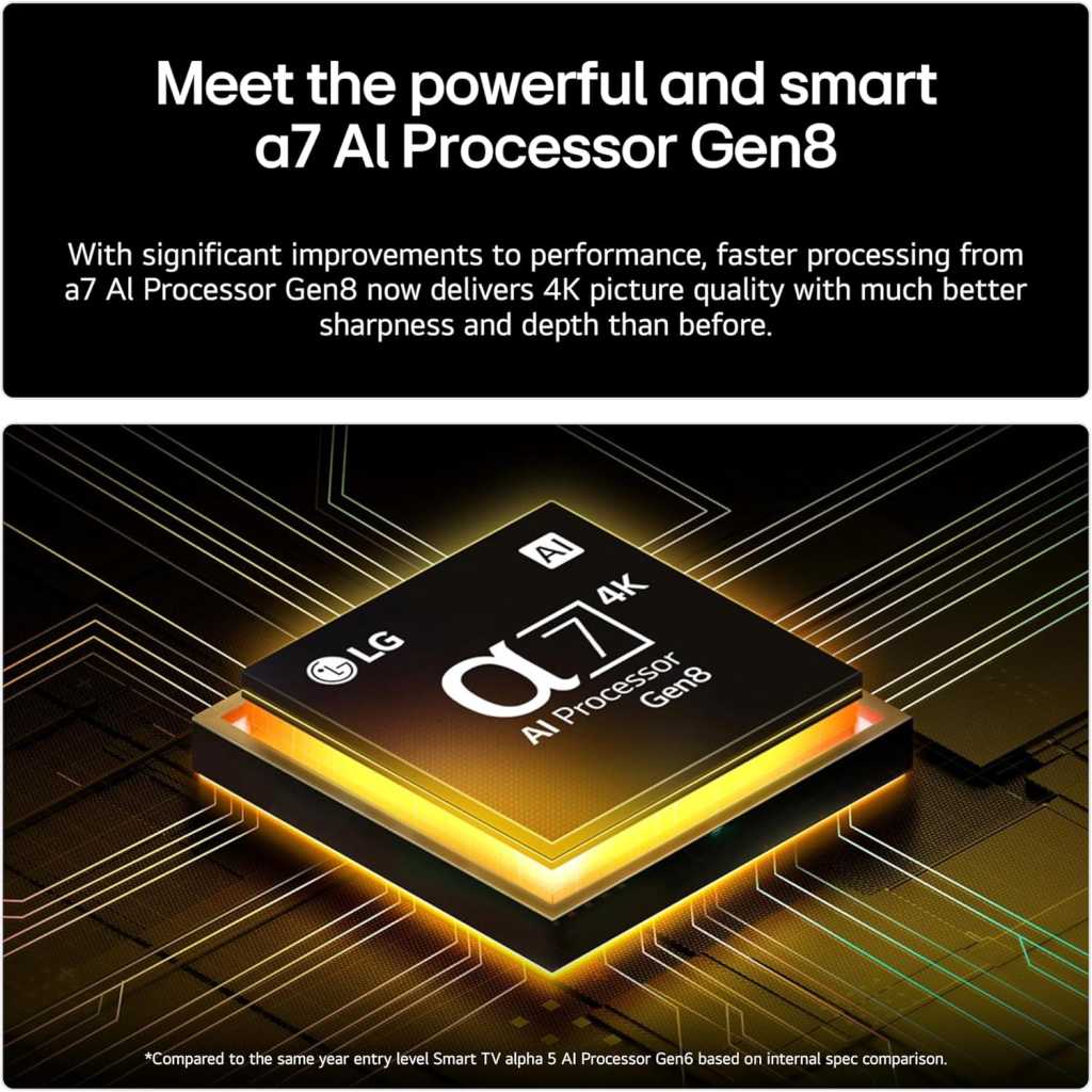 Key Features: All new Dynamic QNED Color with LG’s new, wide color gamut technology displays vivid, lifelike color on your screen α7 AI Processor Gen8 with AI Super Upscaling 4K and Personalized Picture & Sound Wizard webOS with AI Magic Remote enables AI Serch, AI Chatbot, AI Concierge, while the webOS Re:New Program upgrades every year for 5 years True Cinema Experience suported with 4K HDR10,HLG,Filmmaker Mode, Advanced Dynamic Tone Mapping Unlimited Gameplay with HGiG , ALLM , HDMI 2.0 eARC , Game Optimize