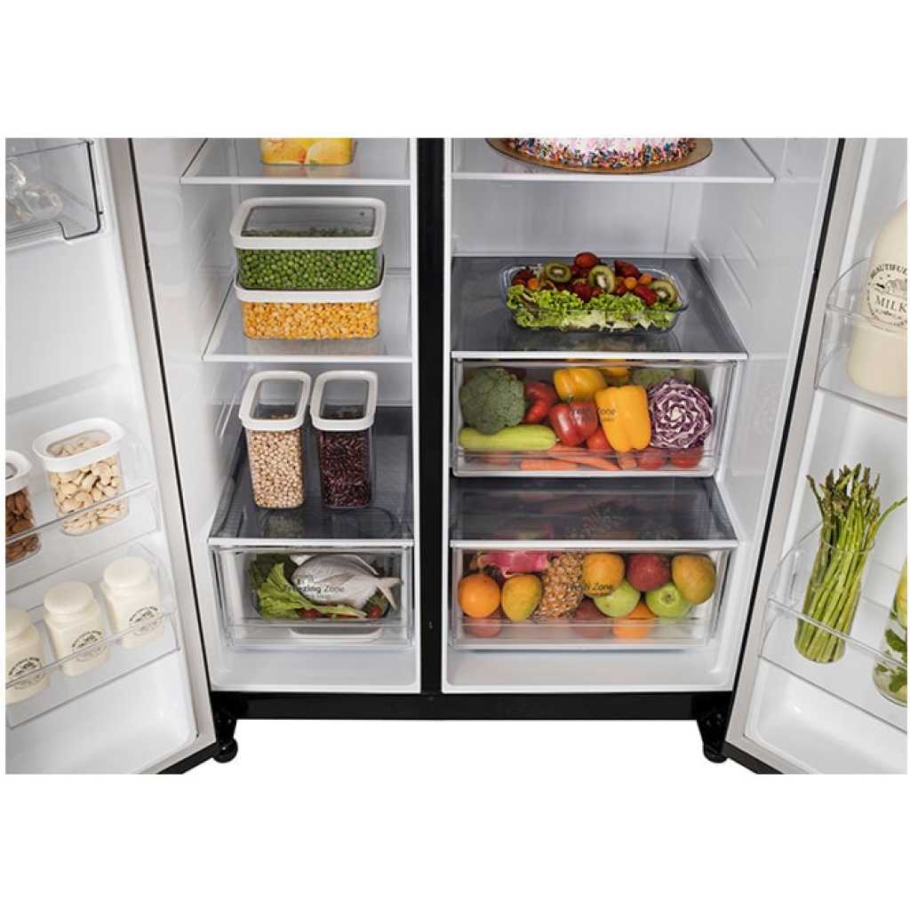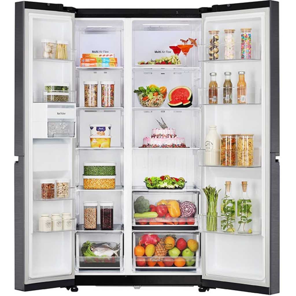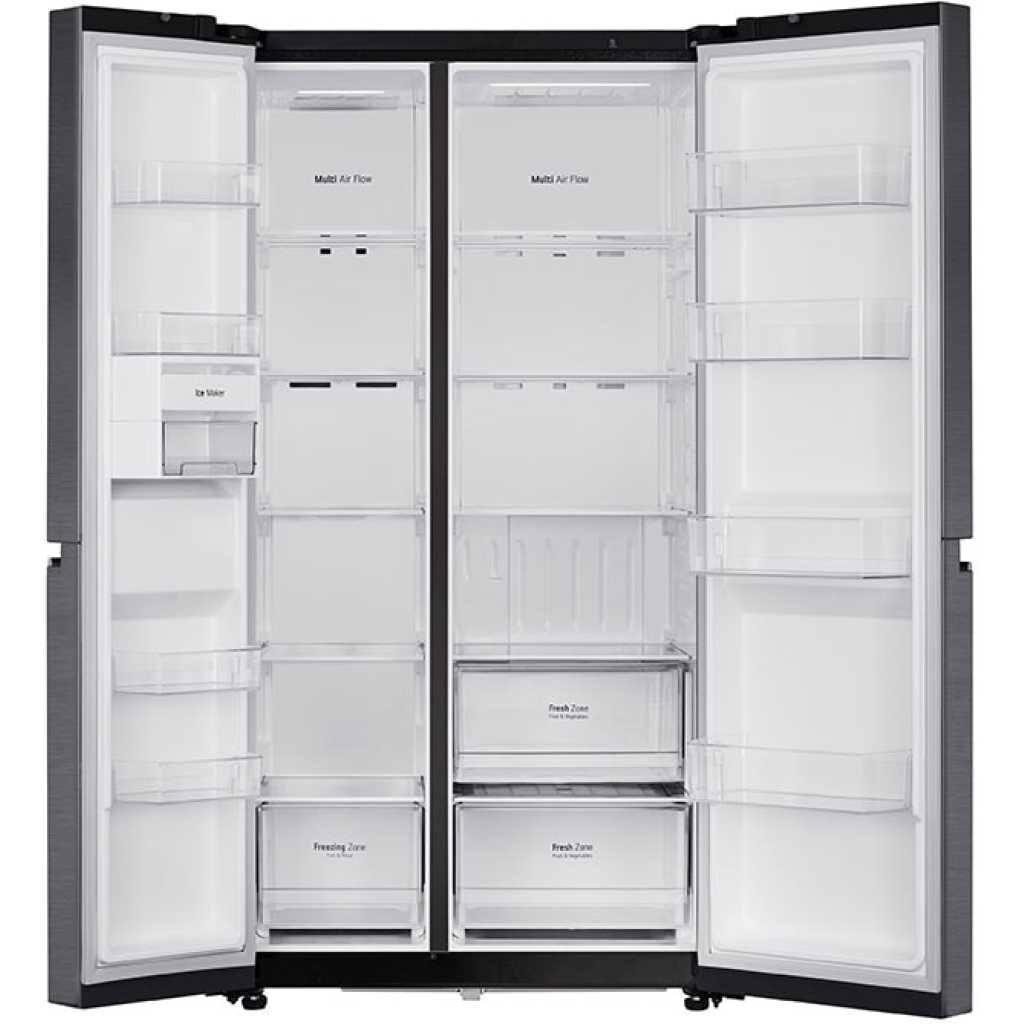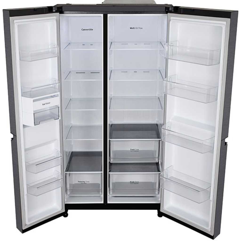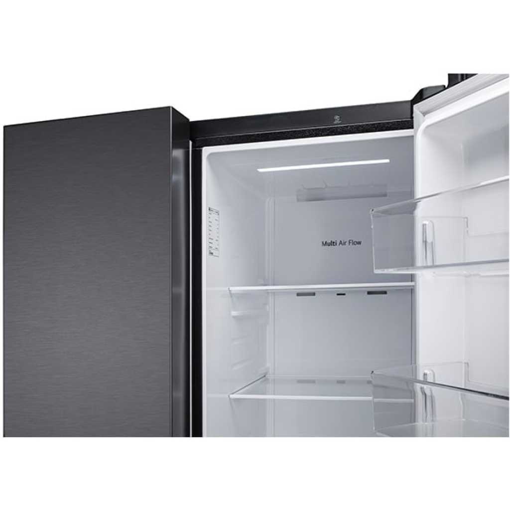 Key Features: LG 674-Litres Fridge GC-B257KQJW | Side by Side Refrigerator. Convertible Smart Diagnosis™ Smart Inverter Compressor Multi Air Flow Multi-Digital Sensors Express Freezing LinearCooling™ – Maintains consistent and precise temperature control by minimizing fluctuations, keeping food fresh for longer and preserving natural flavors and nutrients. Multi Air Flow – Ensures uniform cooling across every corner of the refrigerator through strategically placed vents, maintaining consistent temperatures and preserving food quality. Ultra-Sleek Door – Features a modern and elegant design that adds a touch of sophistication to your kitchen while providing easy access to stored items. Large Capacity – Spacious interior design offers ample storage for all your groceries and essentials, perfect for households of all sizes. Smart Inverter Compressor™ – Delivers exceptional energy efficiency, quiet operation, and durable performance, ensuring optimal cooling while reducing power consumption.