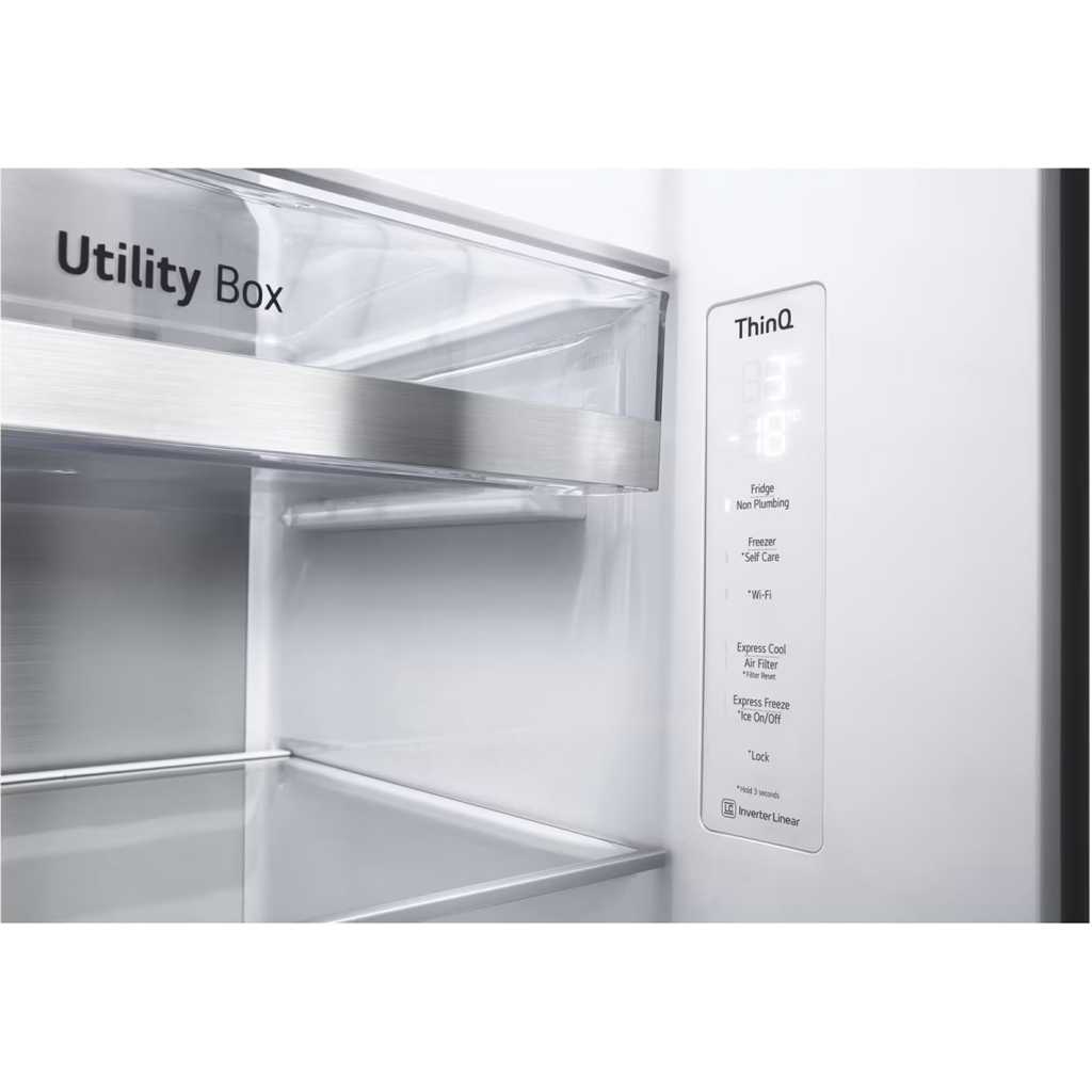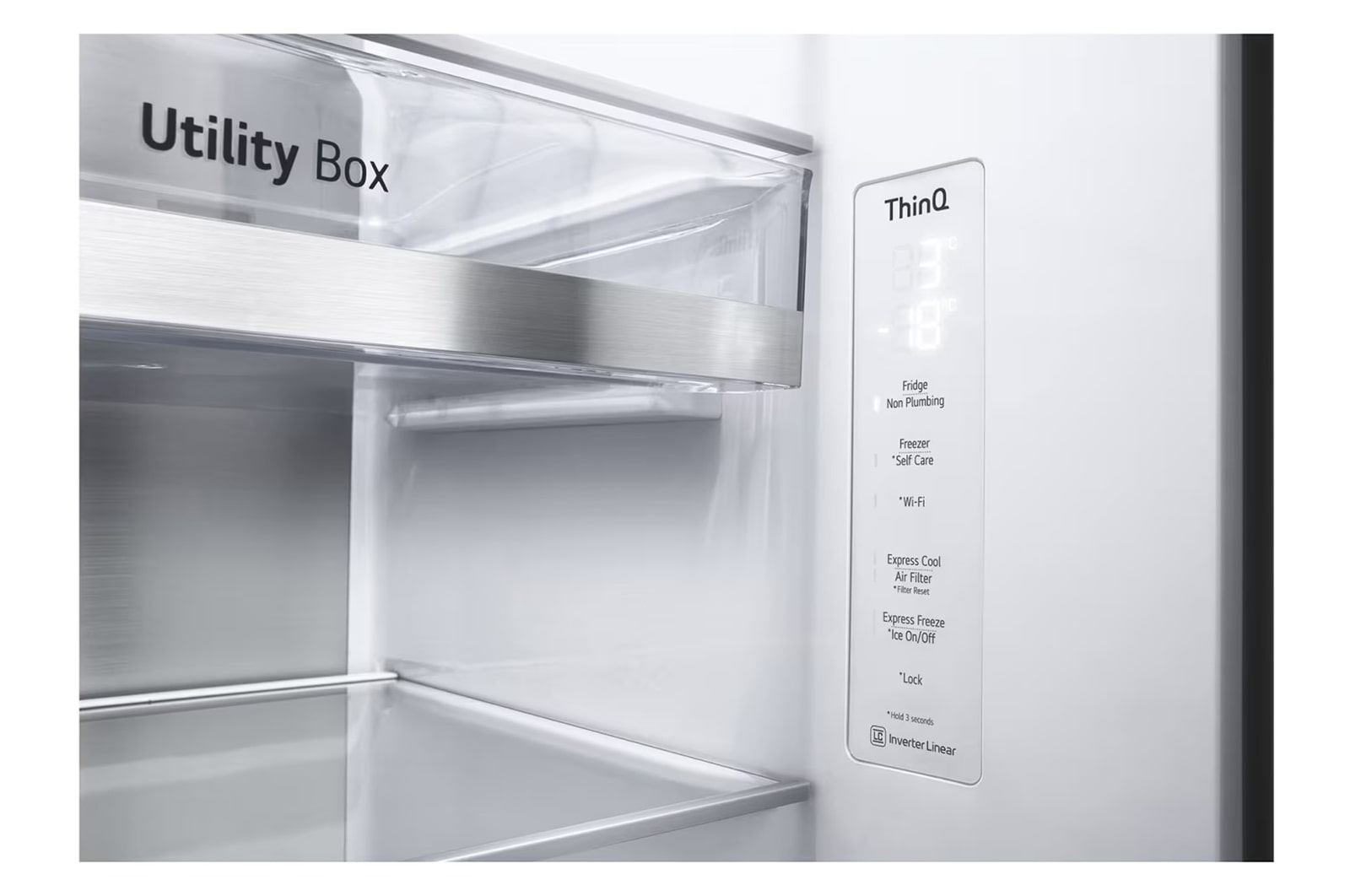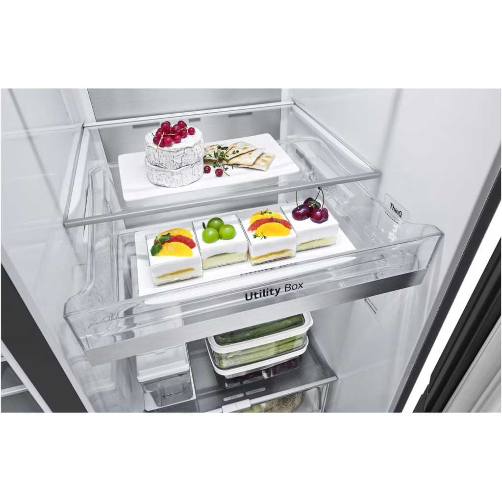 Key Features: LG 674L Side by Side Fridge GC-X257CQES. 674L no frost refrigerator 2 year warranty 10 Years Warranty Smart Inverter Compressor Seamless Instaview DID Knock Twice – See Inside Smart diagnosis, Smart ThinQ UVnano ice & water dispenser Utility box Flat door Multi air flow Door cooling+ Linear cooling Hygiene fresh+ Matte black