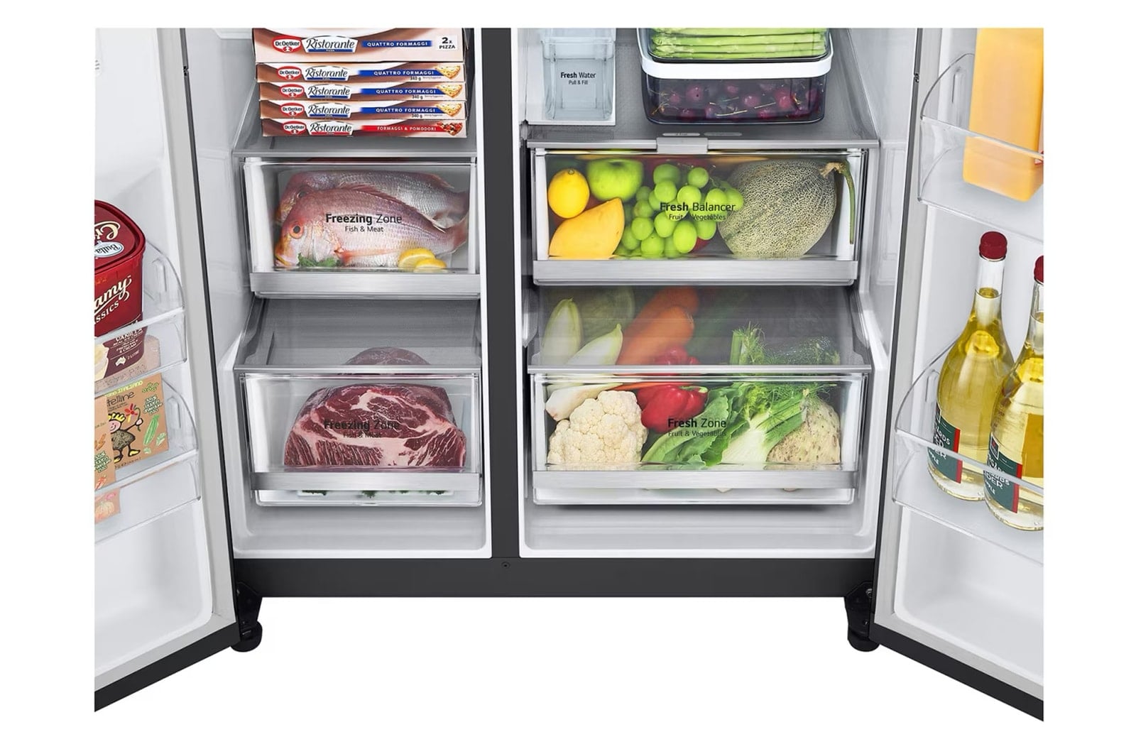 LG 674L Side by Side Fridge GC-X257CQES- InstaView, UVnano™ Dispenser, HygieneFresh+™, Water & Ice Dispenser, Child Lock, ThinQ Refrigerator - Matte Black