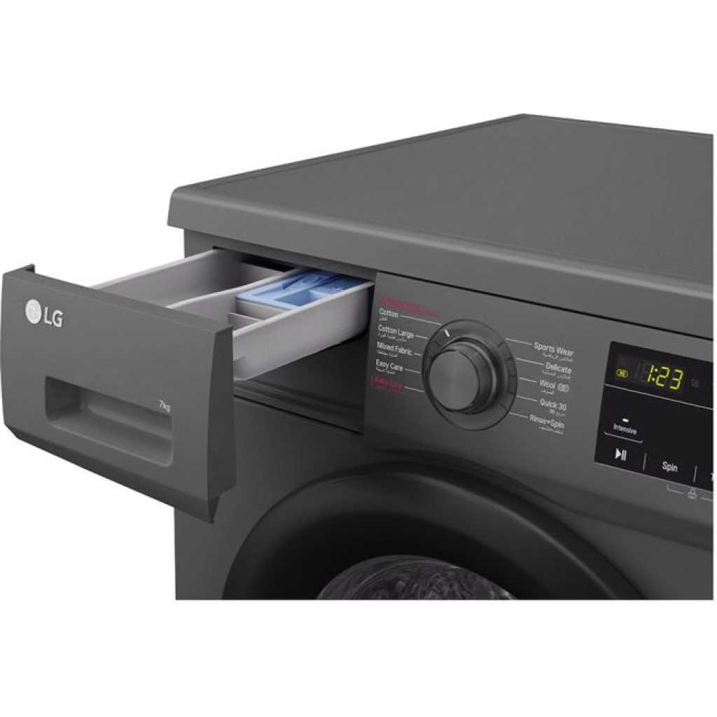 LG F4J3TYG6J 8kg Front Load Washing Machine, Black Energy Saving Inverter Direct Drive™ Motor 10 Years Warranty on Direct Drive Motor Powerful and Delicate washing with 6 Motion Direct Drive Connect to LG Customer Support Directly with ThinQ™ Smart Diagnosis™ Allergy and Odor with Steam Technology