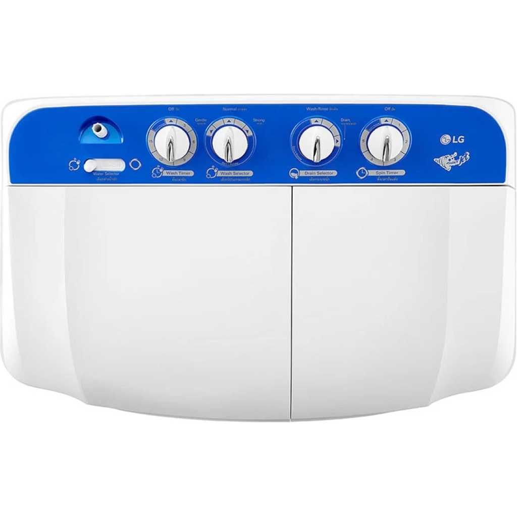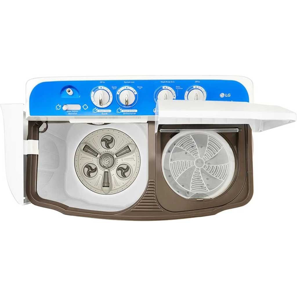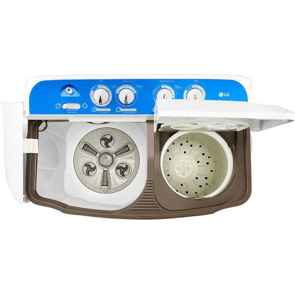 LG P961RONL 8/6kg Twin Tub Washing Machine, White. 8Kg Twin Tub Washing Machine Roller Jet 3 Wash Program Lint Filter Rust Proof Body Roller Jet Pulsator Wind Jet Dry Rat Away 8kg Wash, 6kg Spin 2 Years Warranty
