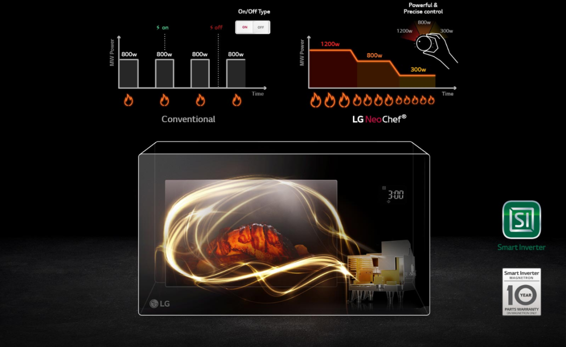 Easy Touch Controls & Tempered Glass Door Interior Anti-Bacterial Coating Stable Turntable More Even Heating of Food. Easy Touch Controls & Tempered Glass Door, Interior Anti-Bacterial Coating, Stable Turntable, More Even Heating of Food. Looking for a simple, quick and easy microwaveable recipes? Download the tasty recipe, and satisfy your hunger today! Key Features: Smart Inverter Even Heating Fast Cooking Tasty Grilling 99.99% Anti-Bacterial EasyClean™