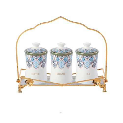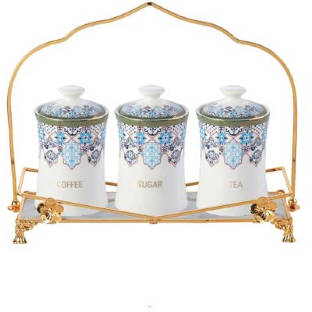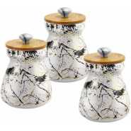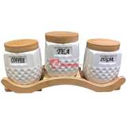 Key Features: Life Smile 3 Piece Ceramic Sugar Bowl Coffee Tea Canister Storage Containers – White Color: White Material: Glass 3 Piece Canister The ceramic tray carries the 3 canisters Easy to clean