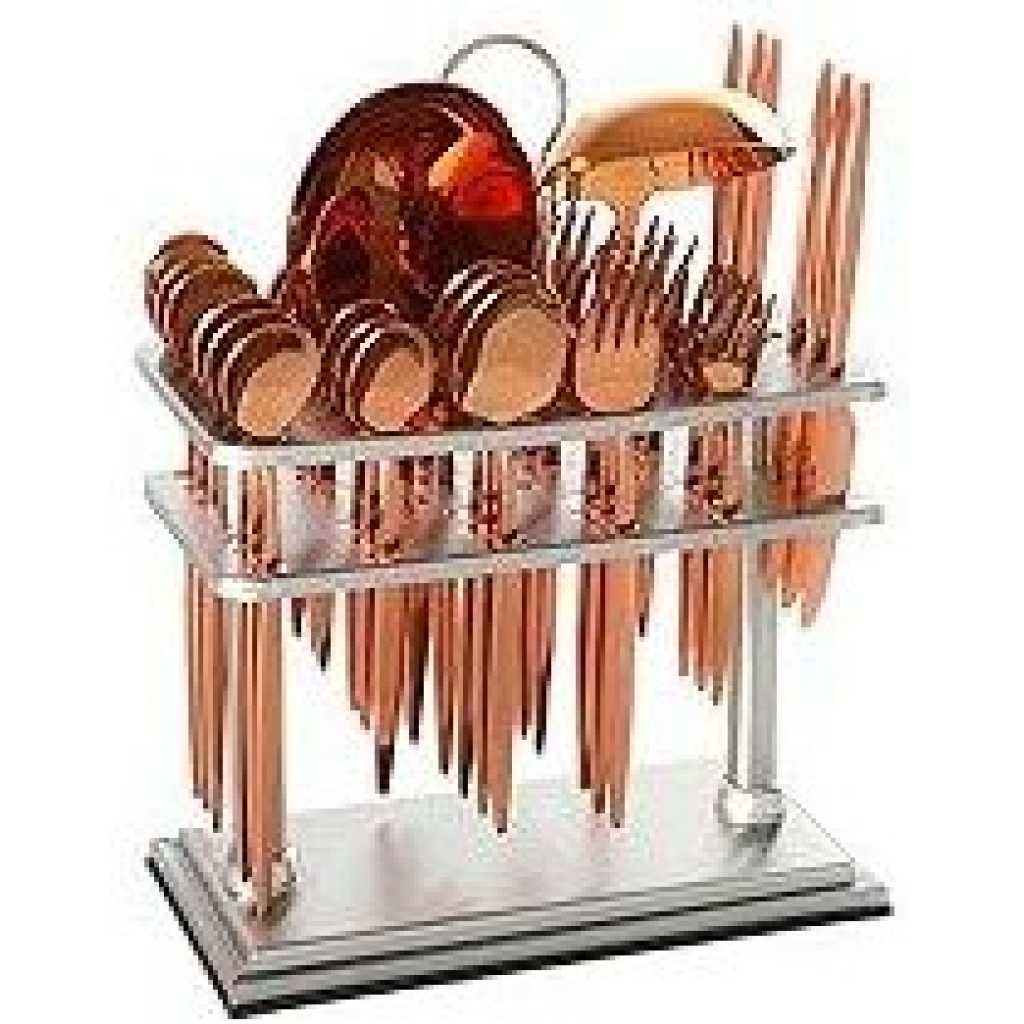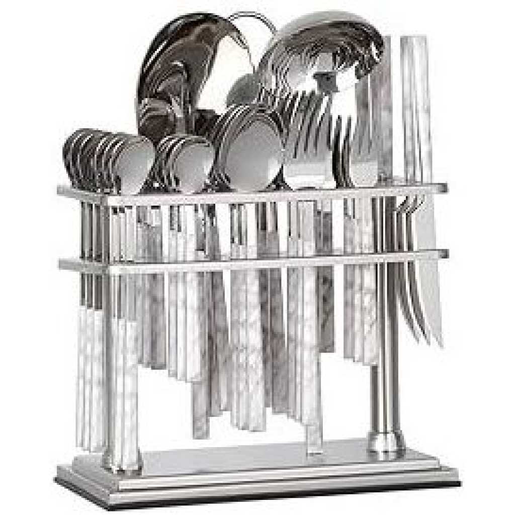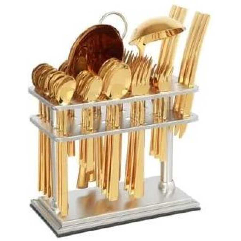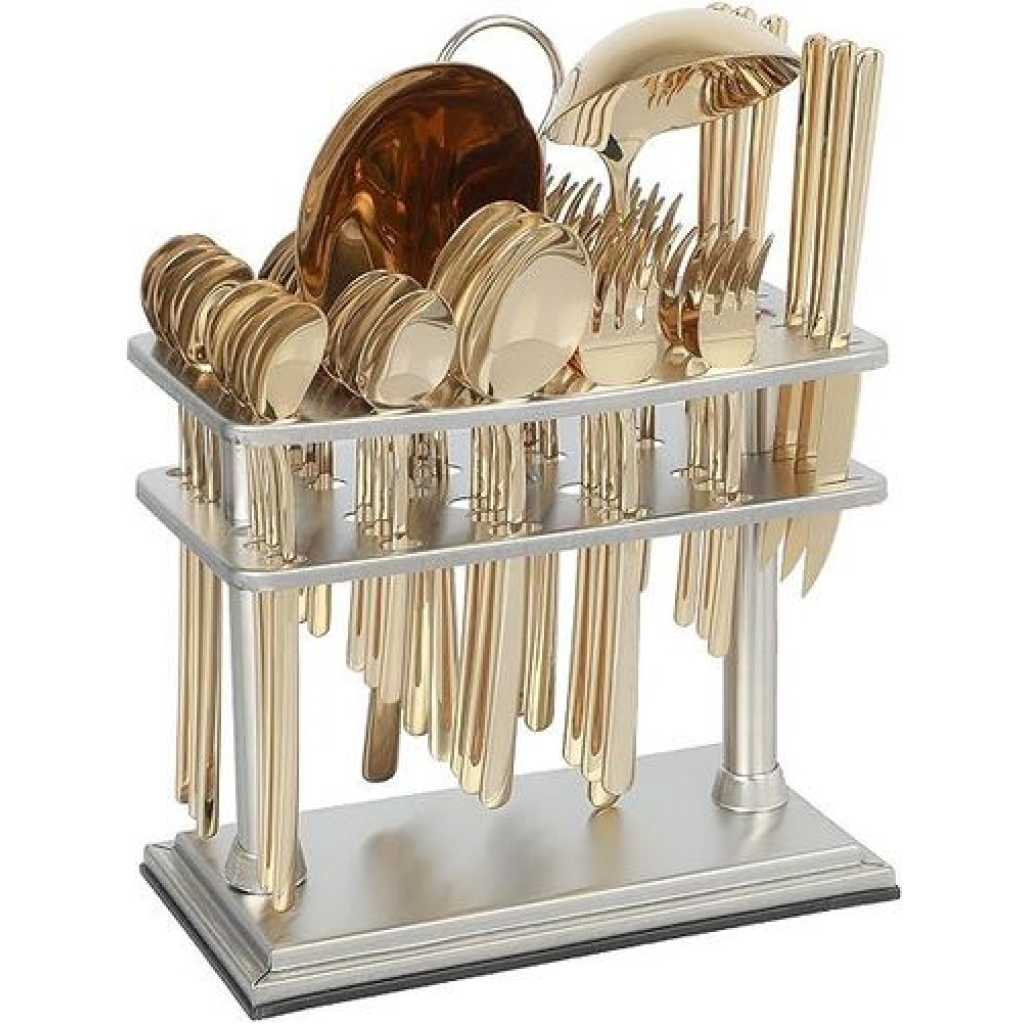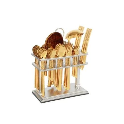 Key Features: 6pcs Dinner Spoon 207mm 6pcs Dinner Fork 205mm 6pcs Tea Spoon 147mm 6pcs Cake Fork 150mm 6pcs Fruit Knife 180mm 6pcs Ice Spoon 205mm 1pc Rice Server 280mm 1pc Soup Ladle 280mm
