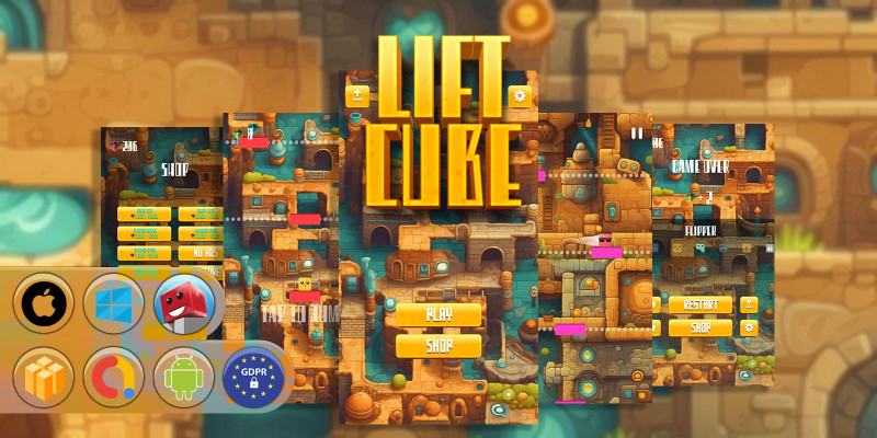 Lift Cube - Buildbox Template. Jump, collect diamonds, and master moving platforms in this exciting vertical arcade challenge.