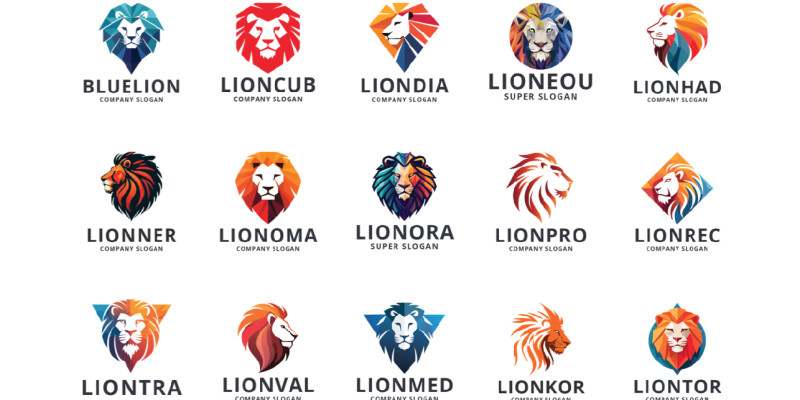 Lion Logo Pack - 15 Unique Vector Lion Head Logo