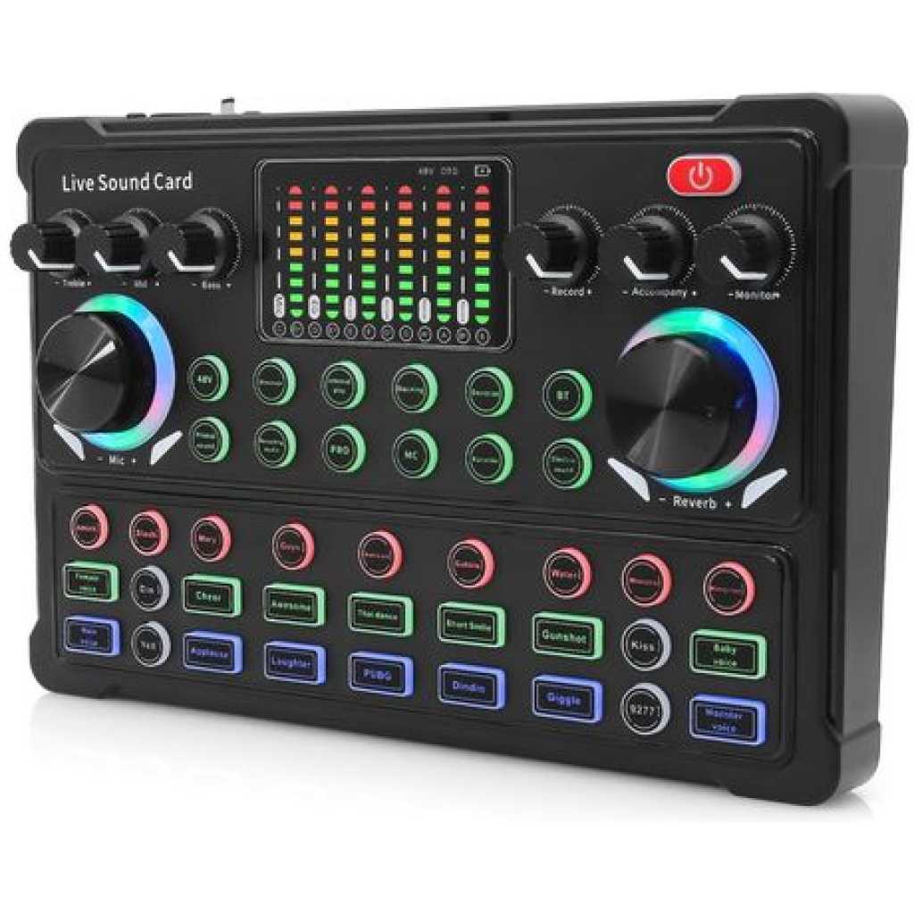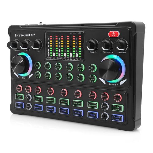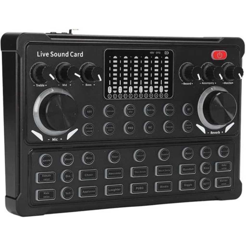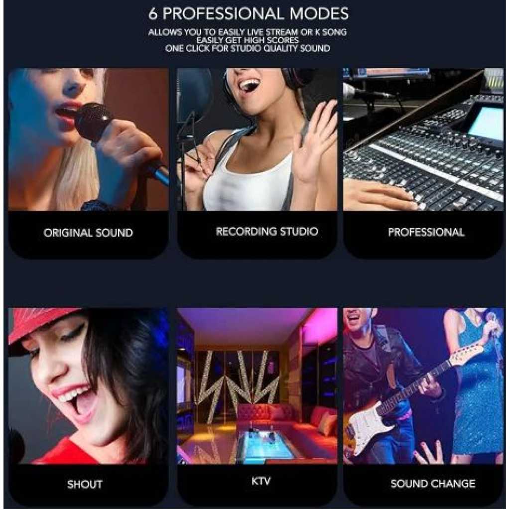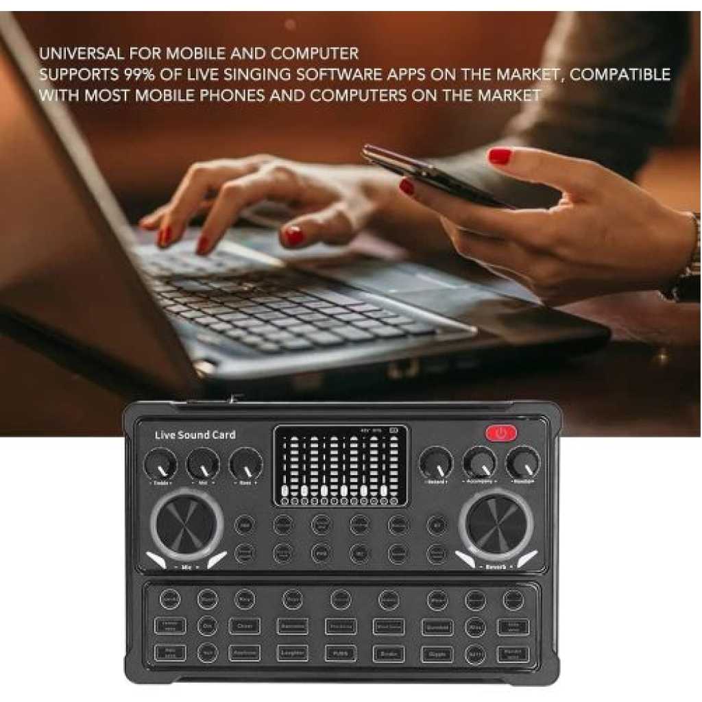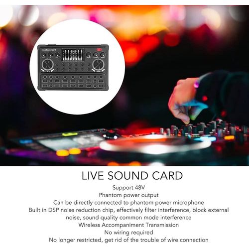 Key Features: Professional Live Sound Card: This sound card has multi function, 6 sound modes, various sound effects, can control the unit independently. Phantom Power Output: Supports 48V phantom power output, which can be directly connected to a phantom power microphone. Noise Reduction: Built in dual DSP noise reduction chip processor, effectively filtering interference, blocking external noise, more delicate sound processing, and better beautiful sound effect. Avoidance Function: Will actively block the background sound when speaking, avoid interfering with normal communication. Bluetooth Function: Support Bluetooth connection, wireless accompaniment , no longer limited by wire