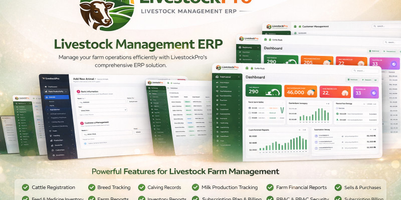 LivestockPro ERP – Livestock Management System. LivestockPro ERP is a livestock farm management system for tracking animals, breeding, health records, feed inventory and reports.