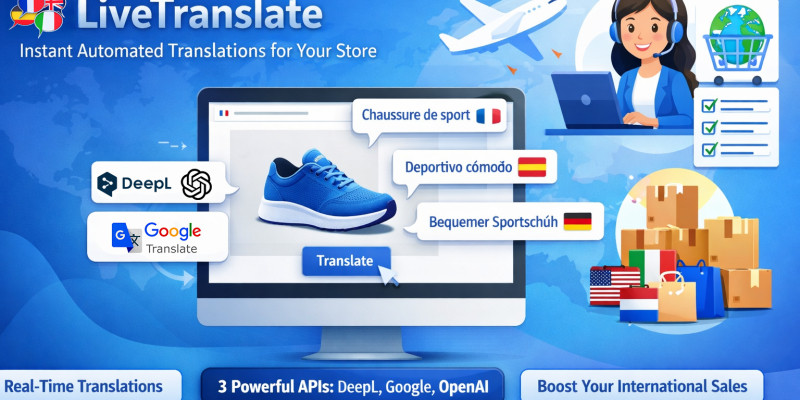 LiveTranslate – RealTime Translation PrestaShop. Make your PrestaShop store multilingual in seconds! LiveTranslate instantly translates your entire store interface in real time