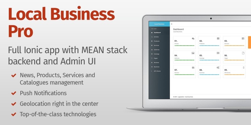 Local Business Pro - Full Ionic App Template. Local Business Pro is a complete solution for presenting your business and its activities through a mobile app.