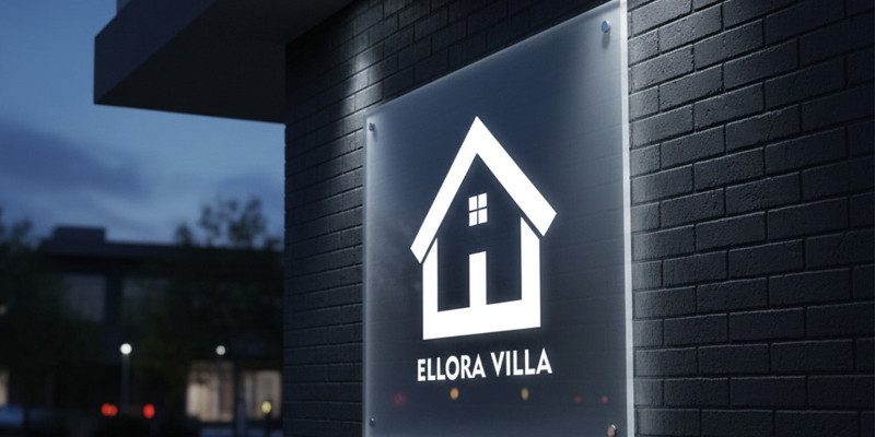 Logo Real Estate Ellora Villa. The ELLORA VILLA logo represents modern luxury living, architectural elegance, and trust in real estate branding. 100% Vector shap