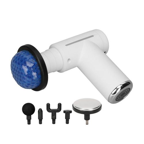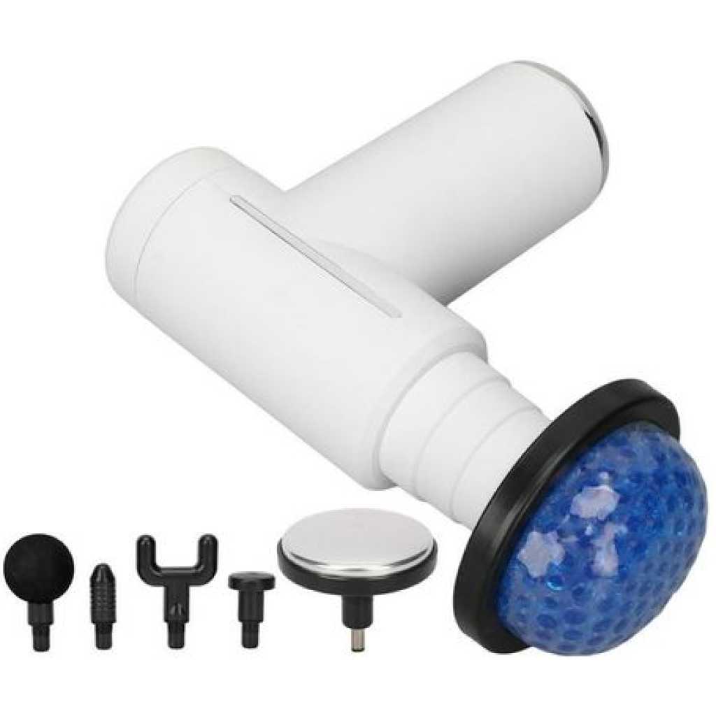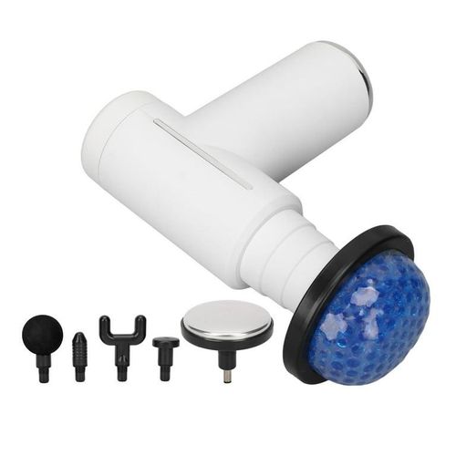. Cold Compress: Head helps treat muscle inflammation. Before using the cold compress head attachment, it works best after the cold compress head is placed in the refrigerator for about 2 hours. 2. Multiple Applicable Scenarios: Muscle massager is suitable for daily massage relaxation, relieving muscle soreness after fitness, office relaxation, etc. 3. Replaceable Massage Head: Removable design, just twist hard when removing the massage head. Multiple massage head are available, with different function and effect. 4. Portable Design: Conform to ergonomic design, non slip handle, easy to hold and use, can be operated with one hand. Lightweight, easy to carry, perfect for home and travel. 5. ABS And Metal Material: Built in 1800mAh lithium battery, easy to charge, endurance. Deep tissue massager adopts ABS and metal material, firm and sturdy, stable and durable. Specification: Item Type: Muscle Massager Material: ABS, Metal Battery Type: Lithium Battery Built In Battery Capacity: 1800mAh Package List: 1 x Muscle Massager 6 x Massage Head 1 x Charging Cable 1 x Manual How to use: 1. Please select a 5V charging device to charge. Please charge for 3 hours for the first charge. 2. Press and hold the power mode button for 1‑2 seconds to start the device, and then short press the power button to select the gear. Press and hold the heating mode button for 1‑2 seconds to start the heating mode. 3. The cold compress head helps treat muscle inflammation.