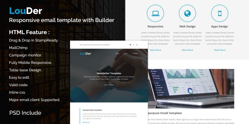 Louder - Responsive Email Template. Responsive Multipurpose Email template with Stampready builder.