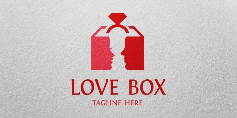Love Box - Logo Template. boutique, box, bride, couple, diamond, girl, groom, heart, jewel, jewelry, logo, love, man, marriage, ring, wedding, woman