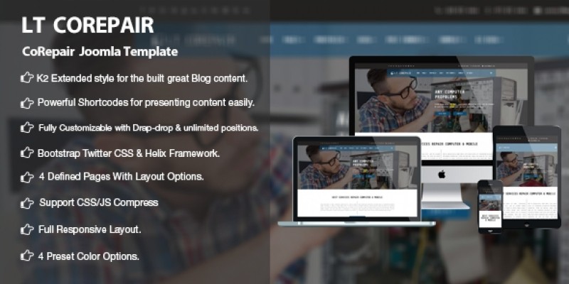 LT CoRepair - Premium Computer Repair Joomla . LT CoRepair is a modern and professional Computer Repair Joomla Template