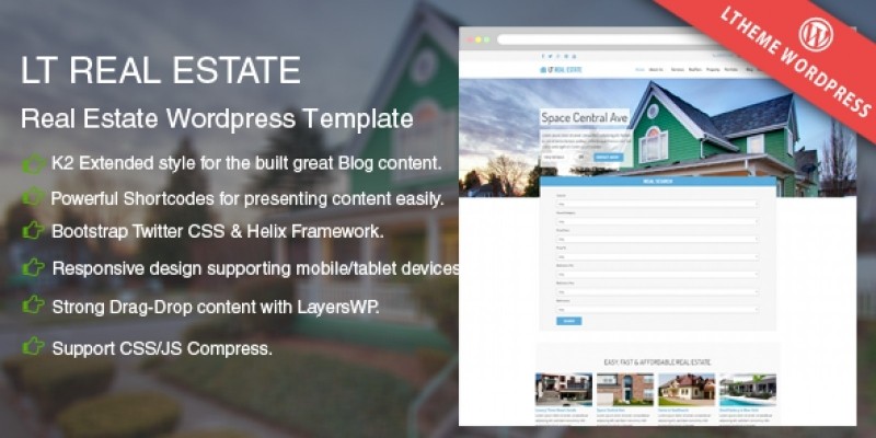 LT Real Estate – Real Estate WordPress Theme. LT Real Estate is Responsive WordPress theme that targets for real estate websites.