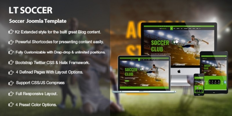 LT Soccer - Premium Joomla Soccer Template. LT Soccer is a responsive Joomla template which is specialized for opening online football store.