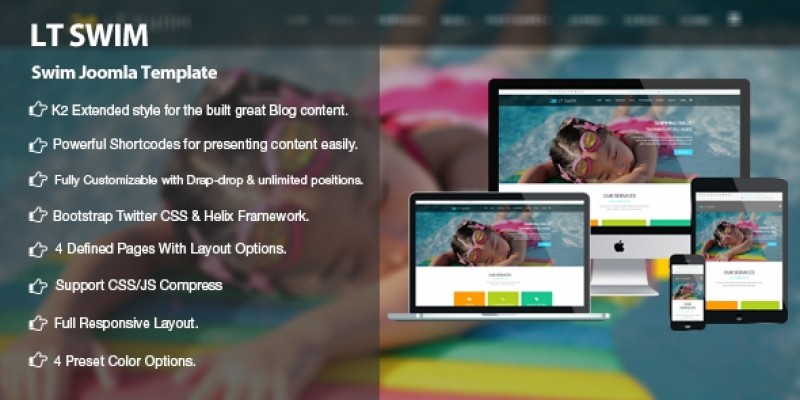 LT Swim – Swimming School Joomla template. LT Swim is responsive Joomla template targeted at Swimming School website.