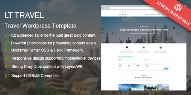 LT Travel - WordPress Travel Theme. LT Travel is Responsive WordPress theme that targets for hotel and travel website.