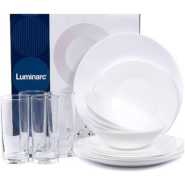Key Features: Luminarc Diwali Table service 18 pieces for 6 people Material: Glass-ceramic opal. 6 plates – 25 cm, 6 plates – 19 cm, 6 deep plates – 20 cm Material: CERAMIC OPAL GLASS Edge protection. Anti-scratch coating. Dishwasher safe Thermal and impact resistance 100% color hygiene Country of manufacture: Arques, France