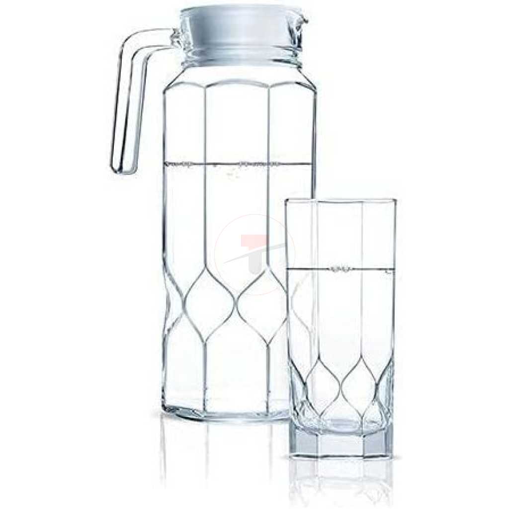 Key Features: Luminarc 7 Piece Octime Diamond Water & Juice Drinkware Set- Clear. Brand: Luminarc Drinkware Type: Everyday Drinkware Service Size: 6 Set Includes: 1 jug and 6 tumblers Dishwasher Safe: Yes Microwave Safe: Yes Color: Clear Material: Glass