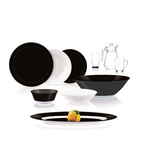 Key Features: Luminarc Black & White Plates Dinner Set (46 pcs) – Multi-colour Luminarc Diwali of 46 Pieces Material: Glass-ceramic opal. 6 Cups at 220 ml 6 Saucers at 14 cm 6 Glasses at 270 ml 1 Jug at 1.6 L 6 Dinner Plates at 27 cm 6 Dessert Plates at 19 cm 6 Soup Plates at 20 cm 6 Bowls at 12 cm 1 Salad Bowl at 21 cm 1 Oval Platter at 33 cm Edge protection. Anti-scratch coating. Dishwasher safe Thermal and impact resistance 100% color hygiene Country of manufacture: Arques, France