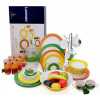 Key Features: Luminarc Color Days Plates Dinner Set (45 pcs). Luminarc Diwali of 45 Pieces. Material: Glass-ceramic opal. 6 Cups at 220 ml. 6 Saucers at 14 cm. 6 Glasses at 270 ml. 1 Jug at 1.6 L. 6 Dinner Plates at 27 cm. 6 Dessert Plates at 19 cm. 6 Soup Plates at 20 cm. 6 Bowls at 12 cm. 1 Salad Bowl at 21 cm. 1 Oval Platter at 33 cm. Edge protection. Anti-scratch coating. Dishwasher safe. Thermal and impact resistance. 100% color hygiene. Country of manufacture: Arques, France.
