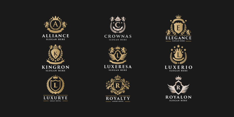 Luxury Royal Crest Logo Collection. Luxury Royal Crest Logo Collection professional logo an excellent logo template suitable for your company. 100% Vector shapes.